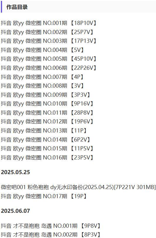 粉色袍袍(欧袍yy) – 微密圈写真&视频合集【持续更新中】 2025-09-13 微密圈 | 铁粉空间 | 岛遇 | 秘语空间 26 粉色袍袍(欧袍yy) – 微密圈写真&视频合集【持续更新中】 目录 「如何下载」:开通VIP即可获取下载地址 「VIP权益」:全站资源免费下载! 「下载方式」:百度云网盘 有问题联系客服QQ:1125247970 请备注:七图社 资源下载下载价格VIP专享仅限VIP下载升级VIP立即购买 0 粉色袍袍(欧袍yy)