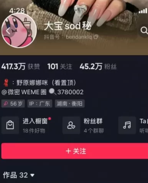 最近大宝sod秘改名56岁后妈,而且账号变动也很大,光抖音都换了几个了~