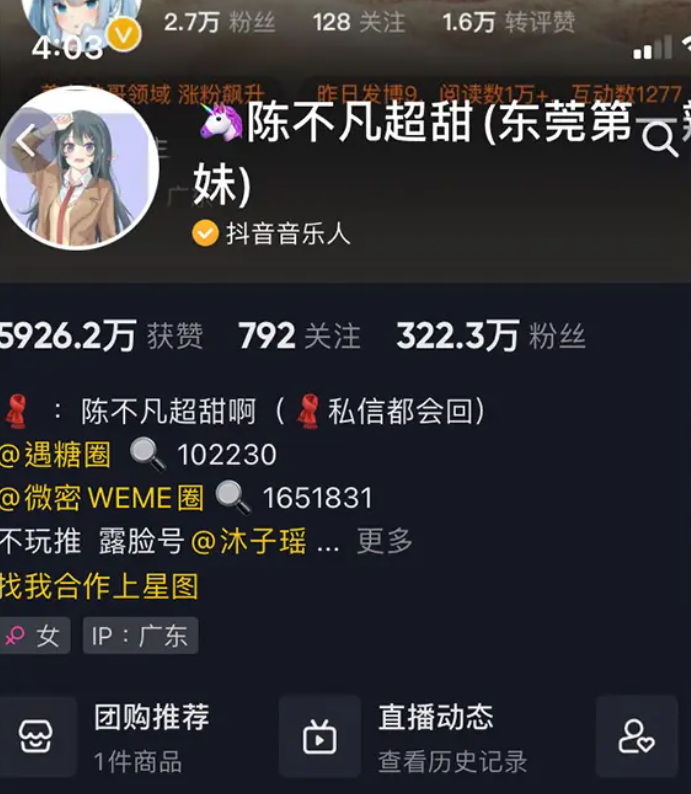 陈不凡是一位来自广东的女孩,天生丽质,身材高挑,有着甜美的外表和性感的身材,可以说是绝佳的颜值担当。目前是抖音音乐人。
