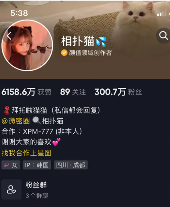 相扑猫是一位在抖音平台上活跃的自媒体创作者,以其颜值为主要创作内容,截至2024年4月10日,她在抖音上的粉丝数达到了382.6万人,发布了181个作品,获得了9313.3万次的点赞。她在微密圈中也有活动,分享了多期内容,包括照片和视频,这些内容通常带有她个人的风格和创意。